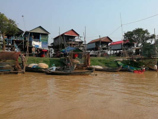 Berührend und wirklich authentisch dann unser Besuch der Floating Villages. Wie ein Mahnmal der Pfahlbauerzeit prangen diese immensen Stelzenbauten in der Trockenzeit in der Landschaft, und verdeutlichen eindrücklich, dass der See Tonle Sap schon bald wieder mehrere Meter steigen wird und die staubigen Strassen nur noch Wasserwege sind.