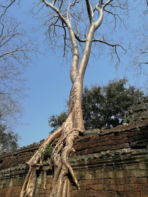 Erhaben sind sie diese berühmten Ruinen. Unendliche Tonnen Stein, die da zu wortwörtlich kolossalen Tempeln gefügt wurden. Als Verzierungen sind oft die wichtigen mythologischen Geschichten der Khmer, viele (natürlich gewonnene) Kriege dieses gigantischen Königreiches mit all ihren Nachbarn. Das die Tempel heute oft eingebrochen oder beschädigt sind, haben aber gar nicht nur die heute bekannten Bösewichte (etwa Eroberer oder auch die roten Khmer), sondern auch die eigenen Könige zu verantworten. Mit jeder Machtübernahme wurde diese riesige Tempellandschaft also teilweise bewusst zerstört, verändert, umgebaut, erweitert, ganz nach Gusto der Mächtigen. Dennoch, auch wenn viel zusammengefallen ist, diese uralten Mauern bergen eindrückliche Geschichte, Kultur, sind mystisch und strahlen eine unglaubliche Kraft und Erhabenheit aus.