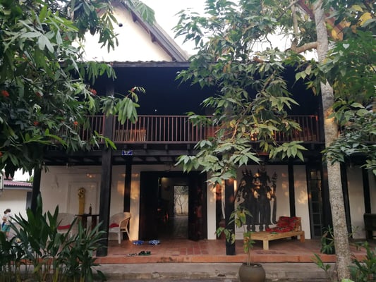 Und sind dann aber in einem seit langem reservierten wunderschönen laotischen Haus aus Ebenholz angekommen. Eine Oase der Ruhe der Eleganz und der Entspannung mit unglaublich viel Raum, etwas ausserhalb der Stadt.