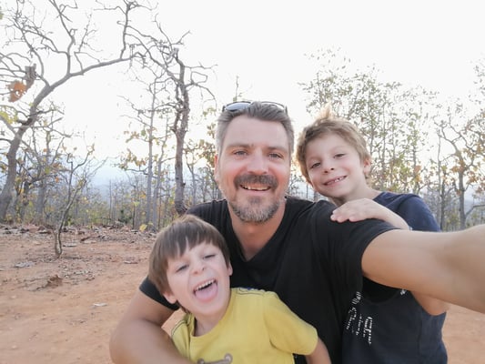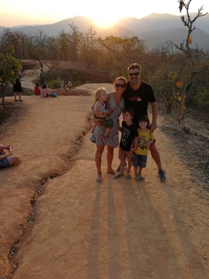 Und hey... es war das Beste, was wir tun konnten. Die natürlichen Becken im (trockenen) Wald, die frische Luft, die Entspannung des warmen bis heissen Wassers... wir haben gute zwei Stunden in Lianen hängend geplantscht und die Jungs haben mit ihren Stecken Ninja gespielt. Danach waren wir alle so friedlich, dass wir voller Ruhe den sehenswerten Sunset im Pai Canyon bestaunten.
