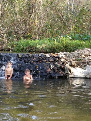 Da sind noch die... Hot Springs. Genau! Heisse Thermen bei der trockenen Affenhitze? Eigentlich genau das letzte was man (frau) jetzt grad so dran denken würde. Aber da der Coffeeshopbesitzer bereits aufreizend säuerlich zu uns rüber schielt, packen wir unsere zappelnde Bande ein und fahren zu den Hot Springs.
